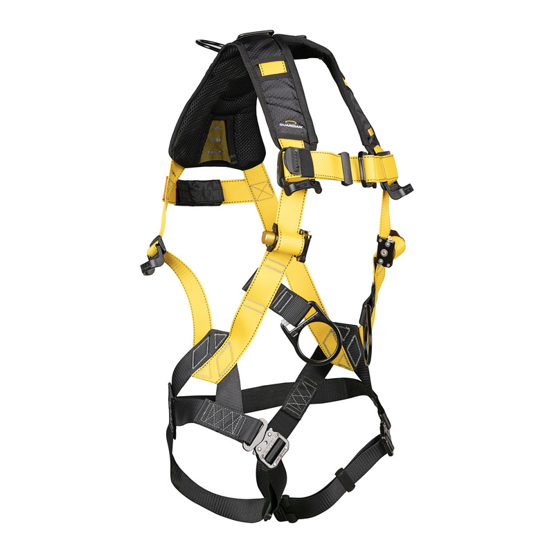 • Clean, and unique lanyard and SRL management: Auto-resetting front and rear lanyard keepers control unused connectors, and the SRL adapter slot keeps dual SRLs positioned high and secure for improved weight distribution