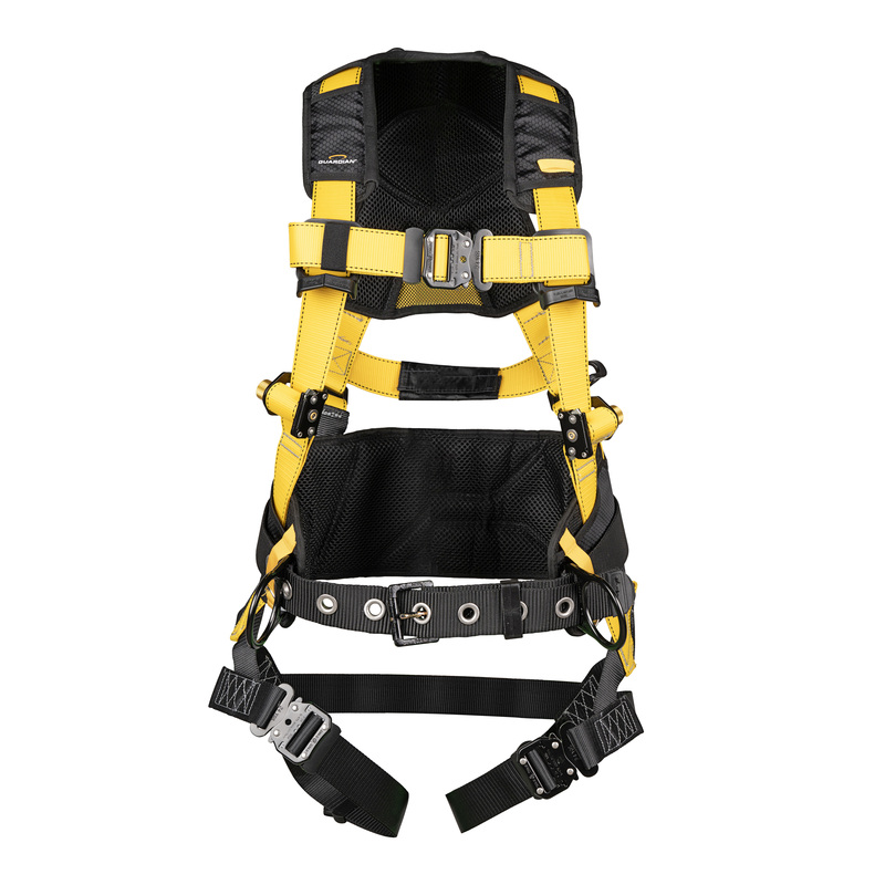 • Clean, and unique lanyard and SRL management: Auto-resetting front and rear lanyard keepers control unused connectors, and the SRL adapter slot keeps dual SRLs positioned high and secure for improved weight distribution